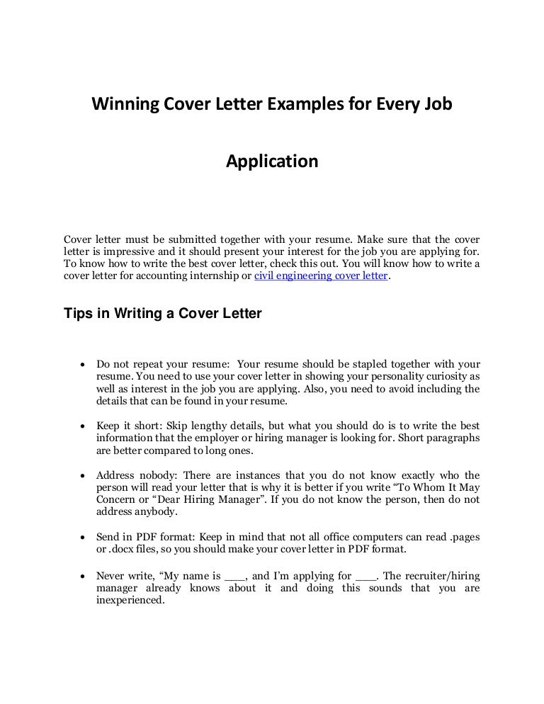 Cover letter examples see perfect cover letter samples that get jobs. Now that you've seem good examples of cover letters to accompany your cv, this guide will show exactly how to write your own, and the content that needs to be included. While cover letter contains candidate's details & skills and it will introduce you to the employer in a close manner. Use two or three key examples. Press ctrl + f or f3 on your keyboard to find a specific word on this page.